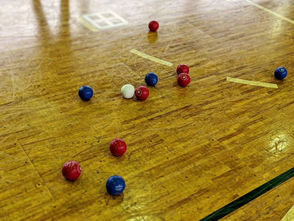 ジャックボール(目標球)と呼ばれる白いボールに、赤・青のそれぞれ6球ずつのボールを投げたり、転がしたりして、いかに近づけるかを競います。