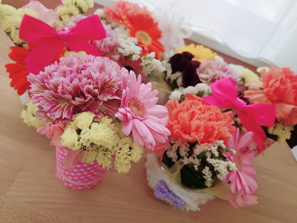 色とりどりの綺麗なお花を、子どもたちに自由にアレンジしてもらいました!