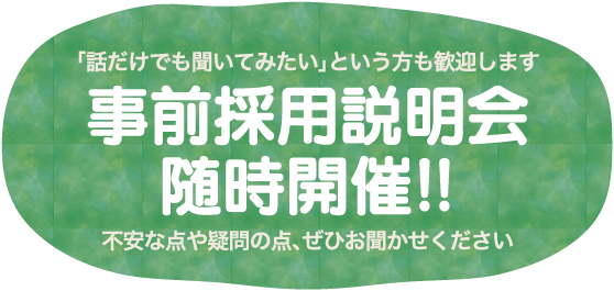 ちょっと興味があるから、将来のために話を聞きたいなど・・・どうぞこの機会にお気軽にお越しください。