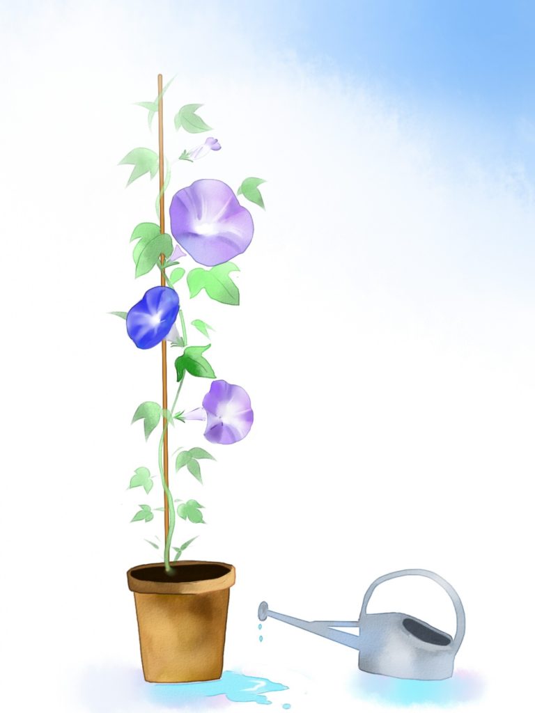 いろいろな所で色や形の違ったアサガオが咲き始め、夏の花や夏野菜の苗が店先に並んでいます!
