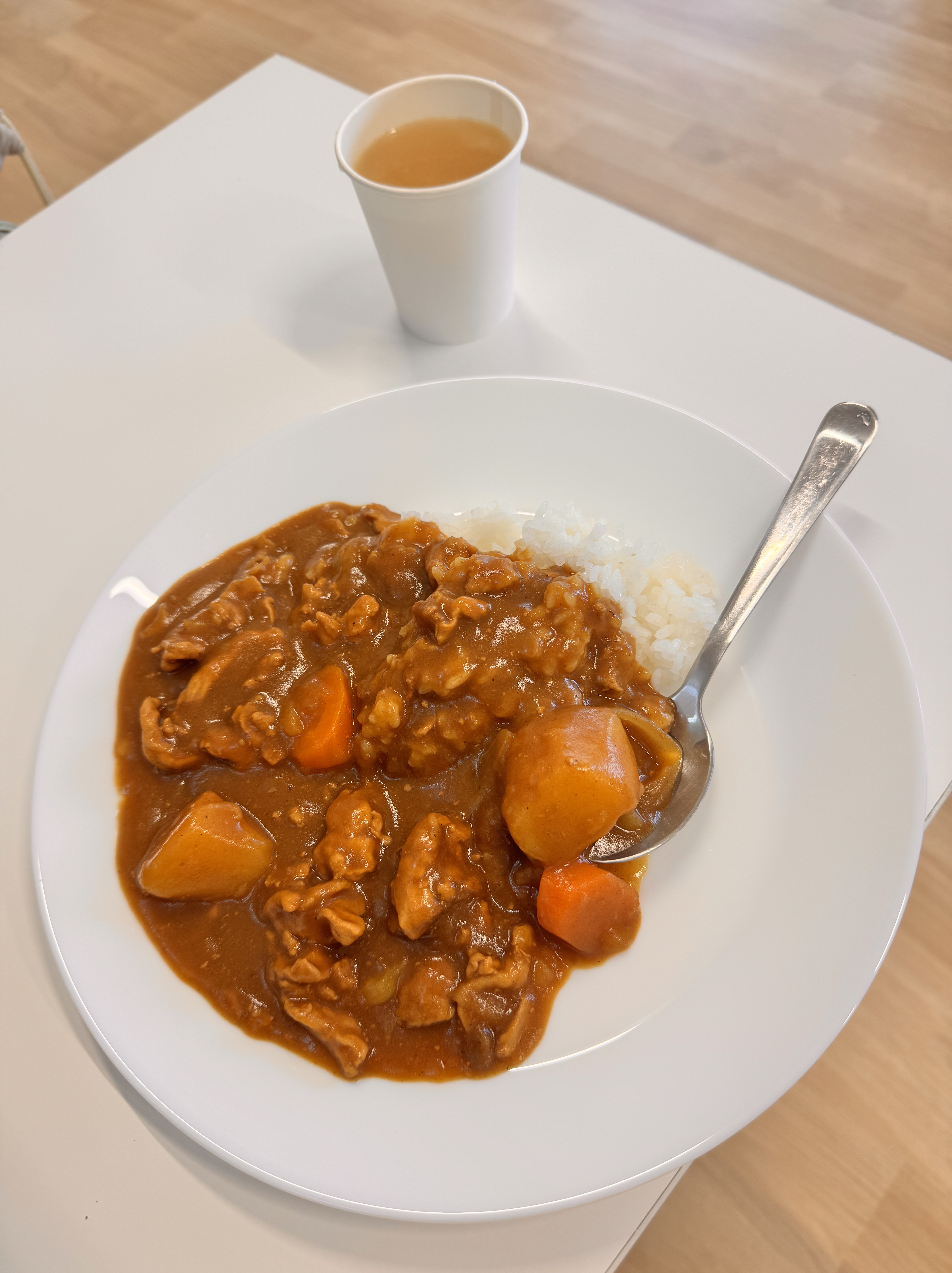 ピカピカのお米と大きく切った野菜がごろごろ入ったカレーが絶妙に組み合わさった一皿を前に、みんなで感謝の気持ちを込めていただきました。