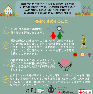 日本赤十字社の「感染症流行時期にこころの健康を保つために~隔離や自宅待機により行動が制限されている方へ~」というリンクを紹介してもらいました。